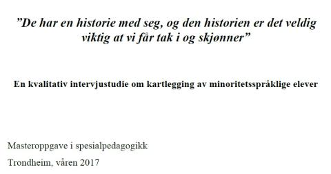 Masteravhandlingen ”De har en historie med seg, og den historien er det veldig viktig at vi får tak i og skjønner” (NTNU, 2017) av Viktoryia Sunde, tar sikte på å få frem hvilke utfordringer PP-tjenesten møter i kartlegging av minoritetsspråklige elever.